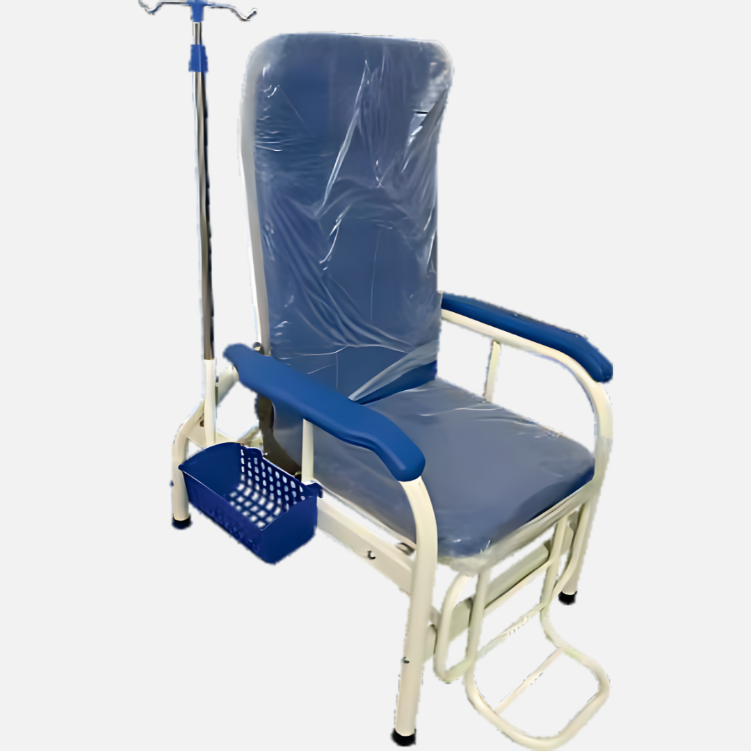This chair helps patients remain comfortable during extended blood transfusion sessions. Therefore, it reduces patient movement and improves procedural safety.