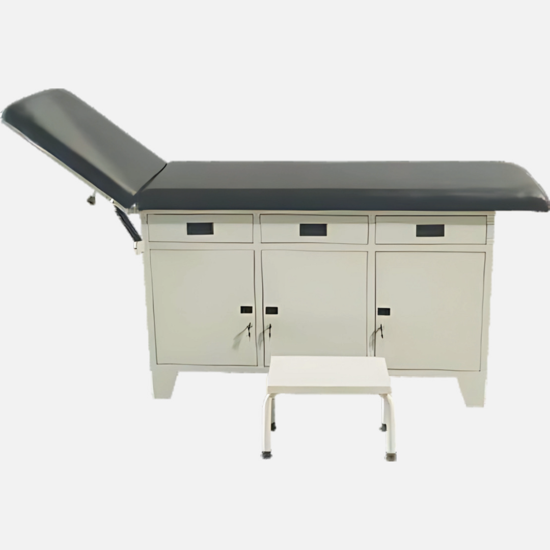 The couch comes with a foam mattress covered with rexine upholstery. The surface feels firm yet comfortable, and it also resists fluids and stains. Therefore, cleaning becomes quick and hygienic. Additionally, the built-in step stool allows patients, especially elderly ones, to get on and off the couch safely.