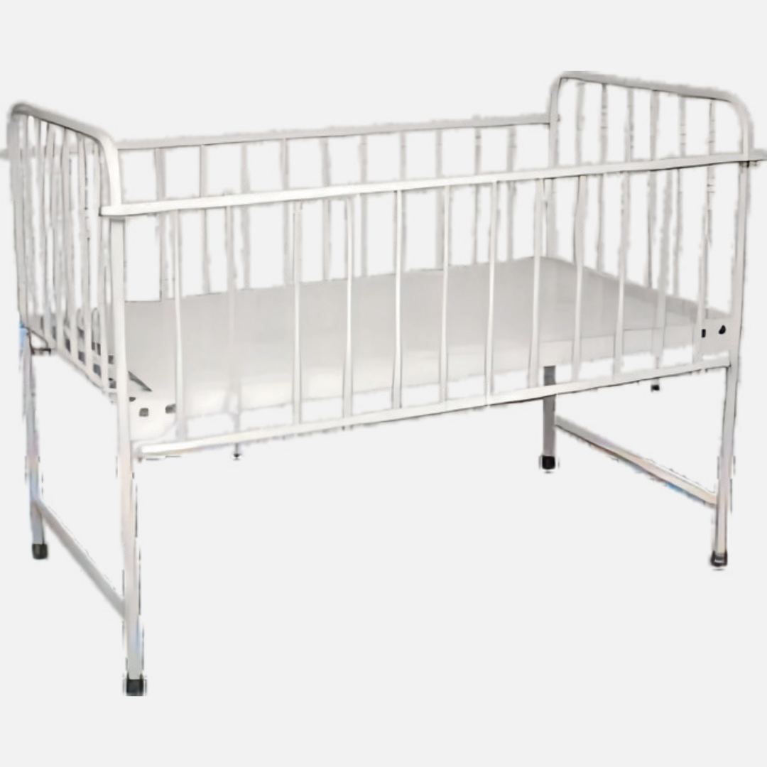 Furthermore, the epoxy powder-coated finish protects the bed from rust, moisture, and cleaning chemicals. Therefore, the bed remains durable and easy to maintain in busy pediatric wards.